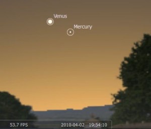 Update: Two nights later on Easter Sunday, I was able to view Mercury and Venus once again, this time from my parents home in Clifton Forge. Conditions were much better for observing on this night allowing Mercury to reveal itself as a small crescent moon looking object. This detail in Mercury really surprised me and although the images of it and Venus, which is currently not showing much of a shadow, were still a bit wobbly from the atmosphere and heat rising from roofs of houses and the street, being able to make out discs for both and shadow detail on Mercury was pretty amazing!