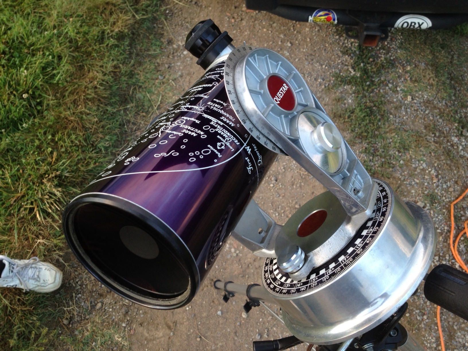 On the way back from a short trip to Bedford, Lauren and I noticed someone with a tripod on the top of a hill at Hollins University. We pulled over and walked up to the man, who, I had assumed correctly, was viewing the transit of Venus through a telescope with a solar filter. Unfortunately, the clouds did not part enough for Lauren and I to get a view through his telescope, but we did talk to the nice man, for several minutes, sharing some amateur astronomy stories and shooting the breeze about a variety of topics. I was very envious of his telescope, a classic 90mm “Questar” that, as he explained, has exceptional optics for planetary, lunar and solar viewing. It is rare that I get to meet someone else with a passion for this hobby, and it was the perfect end to an exciting day of views that were literally once in a lifetime!